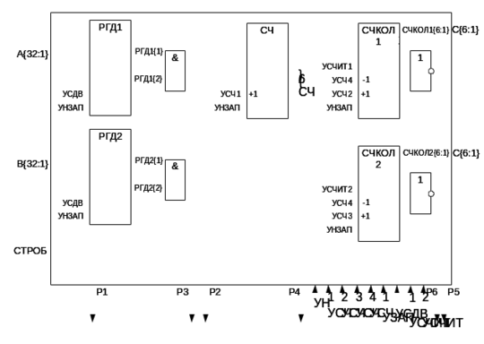 выходные: С{6:1}, УСЧИТ1, УСЧИТ2;