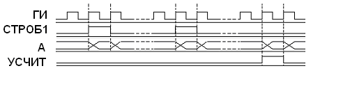 Будем считать, что смена кода А осуществляется по положительному фронту импульсов ГТИ (генератора тактовых импульсов), длительность импульсов СТРОБ1, УСЧИТ равна периоду тактовой последовательности и положительные фронты этих импульсов появляются вслед за положительным фронтом импульсов ГТИ.