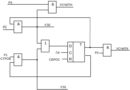 УПРАВЛЯЮЩИЕ СИГНАЛЫ: УЭ1, УЭ2, УСЧИТН, УСЧИТК;