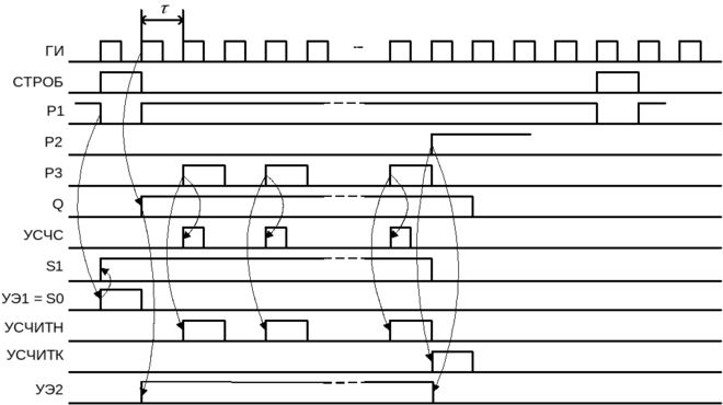 В соответствии с наибольшей критической задержкой (τЗ. УСЧИТН = 100 нс) выберем период ГИ: Т=100*2=200 нс.