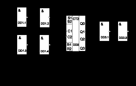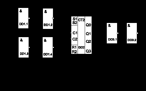На элементе DD1 (Рис. 2. 2) реализована схема формирования сигнала разрешения счета (РАЗР), а на DD3.1 - схема определения конца счета. Элемент DD3. 2 используется для получения заданной полярности выходного сигнала.