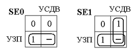 Их получаем из диаграмм Карно. Диаграммы Карно строятся для управляющих сигналов, воздействующих на регистр, в данном случае это сигналы: УЗП, УСДВ.