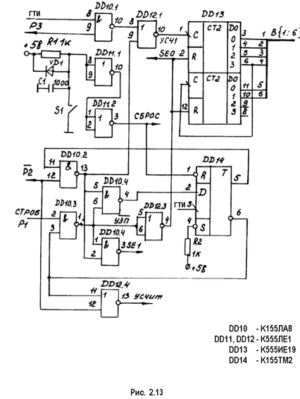 игнал УСЧИТ в соответствии с (2.1) формируется на элементе DD12.4, выполняющем функцию ИЛИ-НЕ (стрелку Пирса):