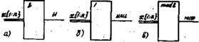 В качестве ψ могут выступать все логические функции многих переменных, подчиняющиеся перестановочному закону [1] . Свертка по "И" у = & x{1:n} устанавливает наличие единиц во всех разрядах входного кода х{1:n} . Свертка по "ИЛИ" y = V x{1:n} проверяет, имеется ли во входном коде x{1:n} хотя бы одна единица. Свертка по mod 2 y = mod 2x {1:n} формирует единичный входной сигнал при нечетном количестве единиц в коде слова x{1:n} и нулевой при их четном количестве. Условное обозначение схем сверток приведено на рис.3,а,б,в.