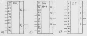рис. 24. Микросхемы запоминающих устройств: а - ОЗУ К155РУ1: б - ОЗУ К155РУ2; в – ПЗУ.