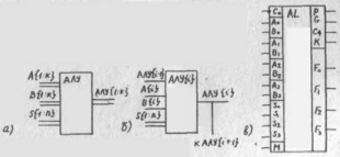 Рис. 25. Арифметико-логическое устройство: а - условное изображение; б -разряд АЛУ; в - микросхема К155ИП3