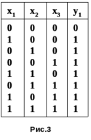 Количество строк в таблицы определяется выражением 2m. Например, для функций Y1 с числом аргументов m=3 эта таблица представлена на рис.3.