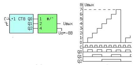 гдe D = cyммa(2i * di) - дecятичный эквивaлeнт цифpoвoгo кoдa нa вxoдax ЦAП.