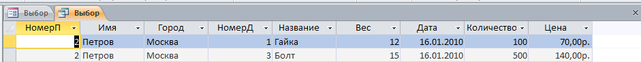 На рис.41 приведен пример использования формы Выбор, а на рис.42 результат выполнения запроса.