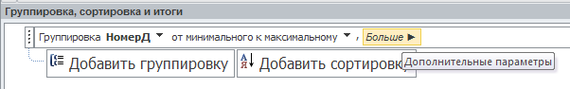 После выбора поля группировки нужно щелкнуть по кнопке Больше в строке Группировка рис. 8.