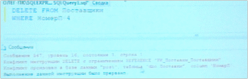 Из текста сообщения следует, что запрос успешно выполнен. Теперь попробуем удалить поставщика с номером 4.