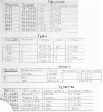 Рассмотрим задачу проектирования БД для туристической фирмы, в которой содержаться данные о реализации туров. В таблице 1 представлены данные, которые должны храниться в БД.
