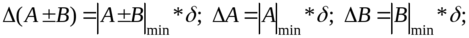 Если при сложении-вычитании операнды А и В являются исходными величинами, то единый масштаб для этих операндов и результата (А±В) должен выбираться сразу для трех этих величин А, В, (А±В). В этом случае: в формулах (2) и (3) для определения L и Р следует принимать следующие значения:
