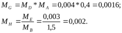 МА = 0,4; МB = 1,53; MX = 0,004;