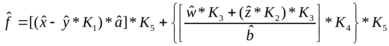 F = [(X - Y) * а] + [(W + Z) / В], при