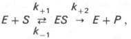 Изучая явление насыщения, Л. Михаэлис и М. Ментен разработали общую теорию ферментативной кинетики. Они исходили из предположения, что ферментативный процесс протекает в виде следующей химической реакции:
