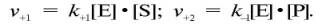 то в уравнениях для скоростей прямой и обратной реакций обязательным компонентом является концентрация фермента: