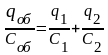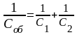 При параллельно соединении С заряды на обкладках конденсаторов складываются (qоб=qi), но q=CU, значит qоб=q1+q2 или CобUоб=C1U1+C2U2. Поскольку при параллельном соединении Uоб=U1=U2, то имеем Соб=С1+С2. При последовательном соединении напряжения складываются, т.е. Uоб=U1+U2 или