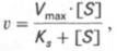 где v – наблюдаемая скорость реакции при данной концентрации субстрата [S]; KS– константа диссоциации фермент-субстратного комплекса, моль/л; Vmax– максимальная скорость реакции при полном насыщении фермента субстратом.