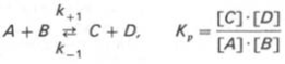 Общие принципы кинетики химических реакций применимы и к ферментативным реакциям. Известно, что любая химическая реакция характеризуется константой термодинамического равновесия. Она выражает состояние химического равновесия, достигаемого системой, и обозначается Кр. Так, для реакции: