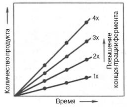 Рис. 4.19. Зависимость скорости реакции от концентрации фермента в присутствии насыщающих концентраций субстрата.