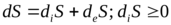 В открытых системах скорость продуцирования энтропии складывается из скорости продуцирования энтропии за счёт внутренних необратимых процессов и за счёт обмена энтропией с внешней средой.