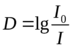 Оптическая плотность вычисляется как десятичный логарифм отношения интенсивностей света до образца и после образца:
