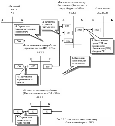 Расчеты по отчислениям на пенсионное обеспечение в Бюджет РФ (базовая часть пенсии) и в Пенсионный фонд РФ (накопительная и страховая части пенсии) представлены в таблице 3.6.