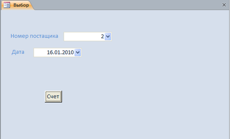 Для ввода параметров этой функции создадим при помощи конструктора форму Выбор не связанную с таблицей или запросом.