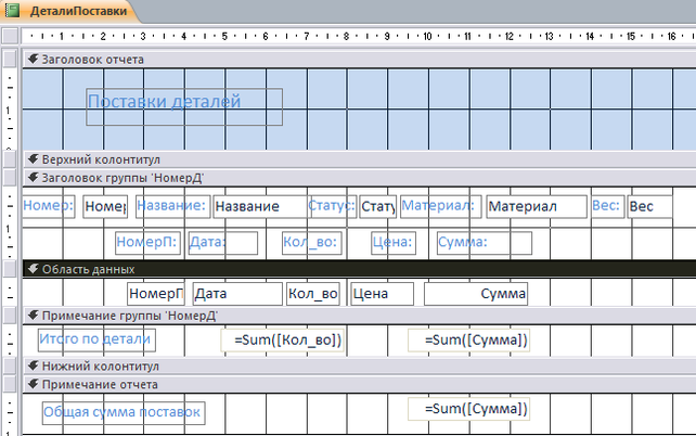 После этого нужно перетащить поля в область отчета и разместить их, так как показано на рис.37.