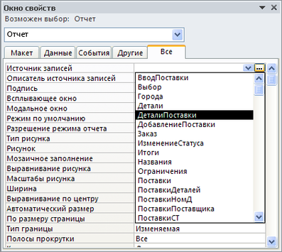 После этого, нужно выбрать в строке Источник записей представление ДеталиПоставки рис.31.