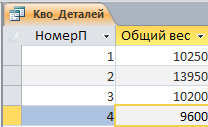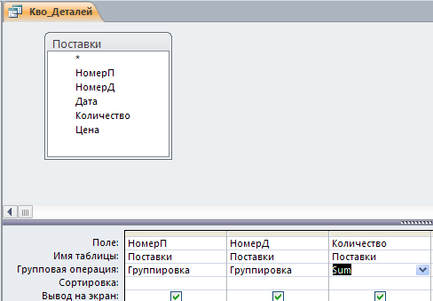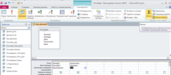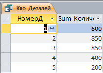 На рис.17 приведен пример запроса позволяющего определить общее количество каждой детали.