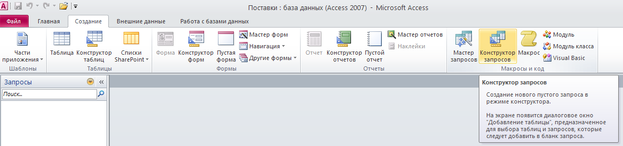 Для создания запросов служит Конструктор запросов, который можно запустить соответствующей командой на вкладке Создание рис.1