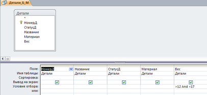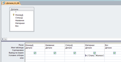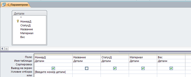 Для таблицы детали создайте запрос с параметром позволяющим вводить название материала, из которого изготовлена деталь.