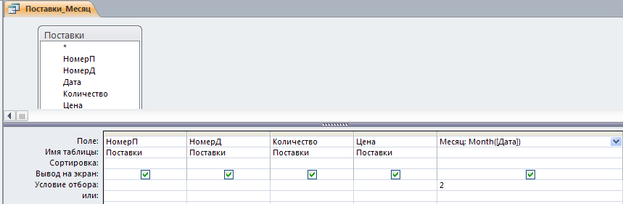 В вычисляемых полях можно использовать различные функции, на рис.8 показан пример использования функции Month(), которая возвращает номер месяца значения поля имеющего тип Дата.