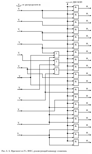 Представленный на рис. 6. 6. фрагмент Уз. ФФС реализован с помощью простых комбинационных схем с использованием сигналов распределителя.