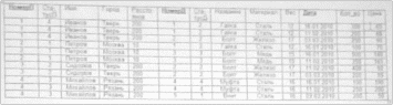 Рассмотрим задачу проектирования БД для туристической фирмы, в которой содержаться данные о реализации туров. В таблице 1 представлены данные, которые должны храниться в БД.