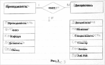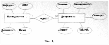 Для нашего примера связь 1 - 1 будет иметь место в том случае, если каждый преподаватель будет вести только одну дисциплину и если каждую дисциплину ведет только один преподаватель.