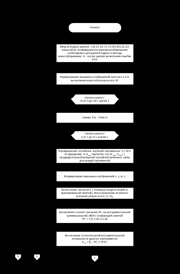 Для этого необходимо на оснсве программы, рассмотренной в п.6.2., разработать другую программу «статистических испытаний» процесса вычислений на целевой ЭВМ. Блок-схема алгоритма, реализуемого с помощью данной программы, представлена на рис.2