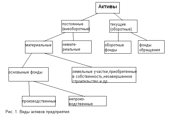 од активами предприятия понимается имущество, находящееся во владении предприятия. Структура активов представлена на рис. 1.