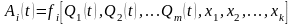 Структурный синтез операционных устройств ВМ. Операционное устройство ВМ можно представить состоящим как бы из двух частей — комбинационной и памяти. На входы комбинационной части поступают сигналы с выходов элементов памяти (триггеров) Q1, …, Qm, а также сигналы, приходящие по шинам управления x1, …, xm. Назначение шин управления состоит в том, чтобы из всех микроопераций, выполняемых устройством, выбрать одну, требуемую в данный момент. Сигналы с выходов комбинационных схем подаются на входы триггеров. Функция возбуждения входного i-го триггера записывается в следующем виде:
