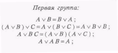 Приведем примеры наиболее важных равносильностей. Для удобства обозрения и запоминания разобьем их на группы: