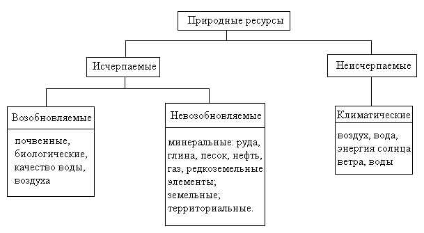 Ресурсы биосферы, в принципе возобновляемые из-за их способности к самовос-производству, могут стать не возобновляемыми при интенсивности их использования, превышающей скорость их восстановления. Такие ресурсы, как лесные и водные имеют черты возобновляемых и не возобновляемых природных ресурсов.