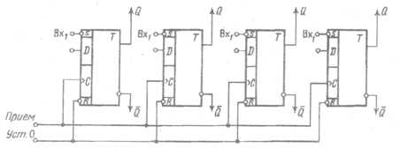 Регистр, предназначенный для работы с двоичными кодами, представляет собой совокупность триггеров, количество которых соответствует количеству разрядов в двоичном коде, и вспомогательных схем, позволяющих дополнительно реализовать следующие функции регистров: