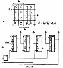 Схема декадного счетчика приведена на рис. 6.3, б.