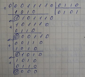 Образуем знак частного: складываем по модулю 2 знаковые разряды делимого и делителя.