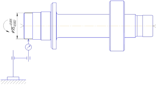 На наружной цилиндрической поверхности задано биение не более 0,05 мм относительно базы Б (Рисунок 1.2). При контроле данного требования используется индикатор часового типа ИЧ-1 с ценой деления 0,001 мм.