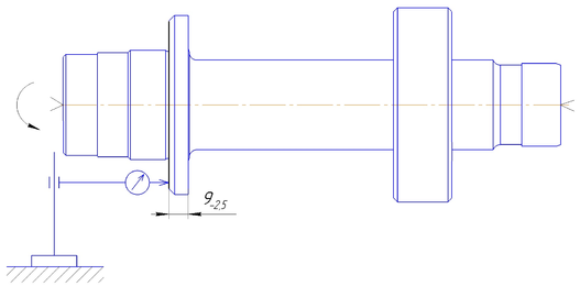 На чертеже задано торцевое биение не более 0,01 мм для плоского торца, расположенного на левом выступе для посадки на него шестерни относительно базы Б (Рисунок 1). При контроле данного требования используется индикатор часового типа ИЧ-1 с ценой деления 0,001 мм.
