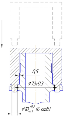 Кроме того, задан позиционный допуск на 6 отверстий, равный 0,15 мм относительно базы Б (Рисунок 1.4). Контролируется данный допуск путем соединения эталонного приспособления из ровно расположенных 6 пальцев и отверстий детали. Зазор между деталью и приспособлением равен 0,5 мм. Позиционный допуск соблюдается в случае соединения пальцев с отверстия ми детали.