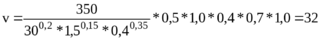 Подставляя числовые значения в формулу для определения скорости резания, получим: